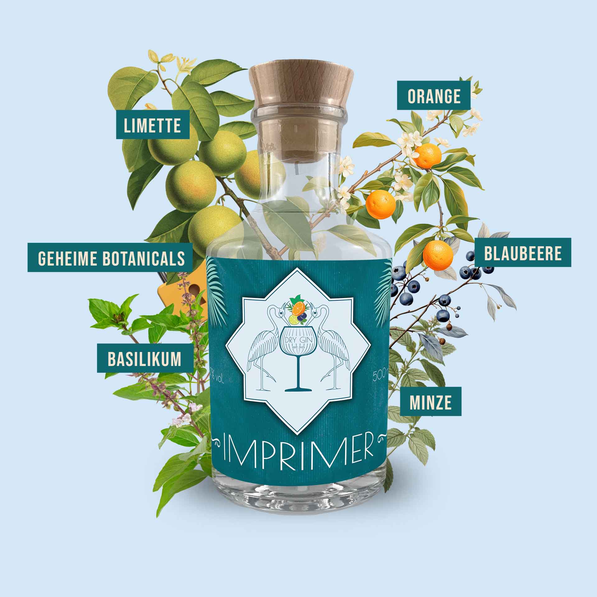 IMPRIMER-GIN ist 100% natürlich und kommt ganz ohne Zusatzstoffe aus. Jede Flasche wird mit viel Liebe in kleinen Mengen hergestellt, um den puren Gin-Genuss zu bieten.